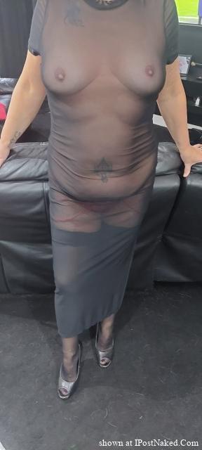 Absolutely amazing love seeing her in her sheer / lace lingerie and nice sexy knickers hervtits are anazing hugged by that sheer material such a turn on |