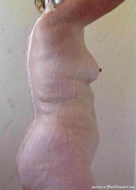 Wowzers..!! Check out that fantastic profile view of your heavenly body..!! Firm and perky titties, with stiff, protruding nipples, a cute, sexy tummy, and the most amazing, well rounded derriere..!! And I'm totally diggin' the closely cropped, well manicured coochie too..!!